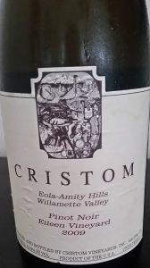 The Pinot Noir I selected as my evidence for the 3rd grape of my 500 grape tour is the Cristom Eileen Vineyard 2009. From Eola-Amity Hills in Willamette Valley this wine is off the charts. Our good pal RP gave it 93 points which is not to shabby. Let me tell you a short story about Cristom. I was one lucky sob that got an invitation to a 2001 Burgundy vertical where I had absolutely nothing to share. I mean what could I say? It’s pinot noir and it’s french and it’s 2001? I was there just to listen, record in my memory the commentaries of the experts and enjoy the wines. My point is, there was a ringer. It was a Cristom 2001 Marjorie Vineyard and it blew the mind of many there.